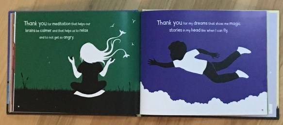 Cindy: In a world that is programmed to focus on discord, disgust, and disappointment, we need daily reminders to focus on the good. To look for the helpers. To be grateful. Prayer books for young children abound, but not everyone prays the same way or wants to pray. Thank You For My Dreams: Bedtime Prayers of Gratitude (Andrews McMeel, 2019) by HSH Prince Alexi Lubomirski and sons is a new book that fills a gap in this category even with the word prayer in the title. In Lubomirski’s introduction, he answers his son’s question about prayer this way: “I explained that saying ‘thank you’ to God or the universe (or whatever he wanted to call it) was very important.”