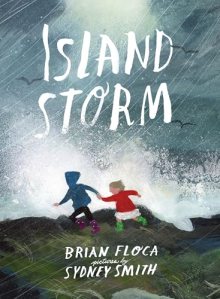 Lynn: In Brian Floca and Sydney Smith’s new book, Island Storm (Neal Porter/Holiday House, 2025), a boy and his small sister set out to “see the sea” as a large thunderstorm brews offshore of their island home. As the clouds gather and the wind increases, the pair, holding hands, push further and further along the coast, past boarded-up vacation homes and into the strangely empty town. At each pause, they push and pull each other and decide to go on. When a thunderous boom shakes the ground, the children turn and race for home as the wind picks up and the rain begins. Cold and wet, they see their mother, searching for them, and fling themselves into her arms. Safe, to be comforted and warmed as the storm rages. The concluding pages depict a calm, beautiful day that follows as the pair explores their beach together.
