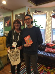 showed us his collection of Ed’s books near where he works. He practiced his drawing with those books as a child and decided to include similar step-by-step lessons in the back of this book so that his readers can draw Baloney and his friends and create their own stories. He has a beautiful space to work and his wife has her studio up a circular staircase so they can share the dog while they work. There’s a lot of talent under this one roof.
