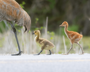 The young chick has much to learn before it becomes a colt but mama and papa and a sibling are there to help in the journey. Habitat, food, and dangers like the threat of snapping turtles are presented in the verse and Lieder’s intimate photography. The journey of the crane chick mirrors the growth and learning of a young child with all of its new adventures and challenges making this a great choice to read aloud in large groups, or within the comforting nest of a caregiver’s lap. Sandhill Cranes are frequent fliers over the bayou behind my house. Listening to their prehistoric sounding call as the mist rises from the water in the early hours is a favorite treat, while a friend down the way usually has a nesting pair in her yard each spring. Frost and Lieder provide an even closer look for those of us who aren’t so lucky to see them in the wild.