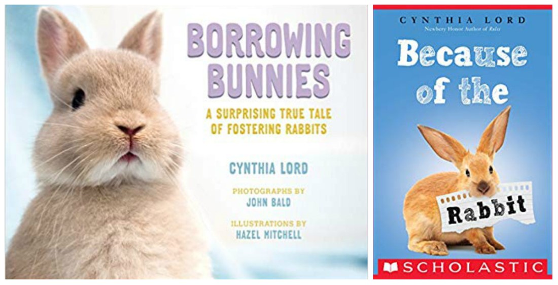 Lynn: Things are really hopping at Newbery Honor author Cynthia Lord’s house. As proof, we offer her two new enchanting books that both feature rabbits. They also happen to have the most enticing and adorable covers EVER! In fact, we think all you’ll have to do to promote these is to set them face out on the shelf and stand back. And, since you may never get much chance to read them once the kids see them, here’s what is happening inside those covers.