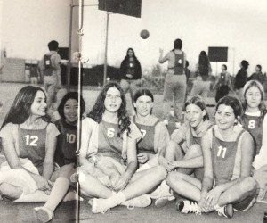 Barbara: I’ll answer that with a photo from my 1972 yearbook. I’m #11 and my sister, Kathleen Carroll Au, is #12. I cut the sleeves off my cotton gym suit to get a little more freedom of movement.